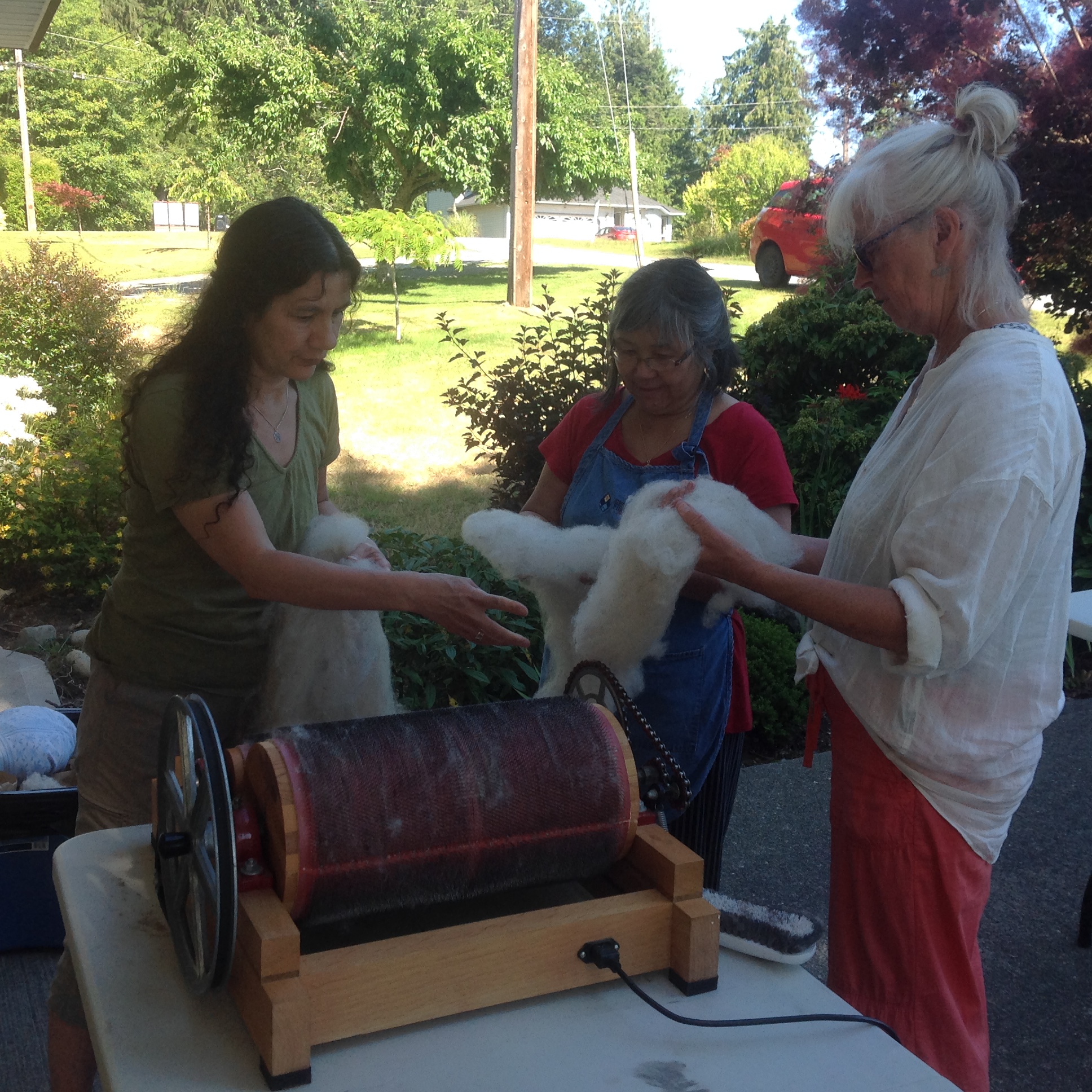 We have and will continue to explore processing, carding, spinning, dyeing, felting, and other aspects of the Fibreshed movement of your interest. A tool library of books and equipment is also accessible to members.